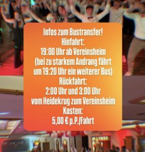 Damit alle sicher und bequem zum Heidekrug und wieder zurückkommen, gibt`s natürlich auch in diesem Jahr einen Bustransfer: