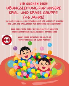 Wir suchen DICH! Übungsleiter/in für unsere Spiel- und Spaßgruppe gesucht!